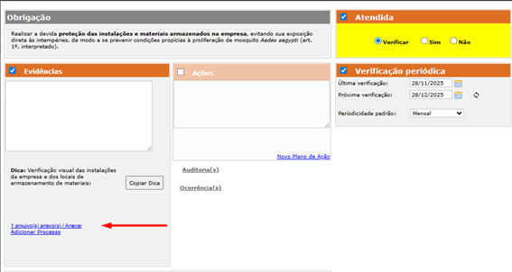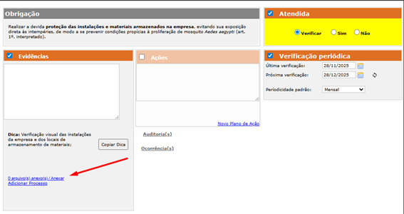 Dentro do Legal, é possível adicionar arquivos nas evidências das obrigações. Para fazer esse processo, é necessário que o usuário tenha permissões para edição de obrigações.