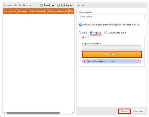 NOTA: Ao marcar a opção “Adicionar também para obrigações similares a esta”, o documento será automaticamente copiado para todas as obrigações similares.