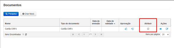 Feito isso, o sistema irá carregar uma janela de atalho do módulo Siga. Marque a caixa de seleção em “Atribuir” para vincular o documento.