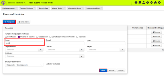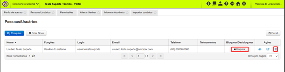 Pessoas/Usuários – Como excluir ou bloquear usuário
