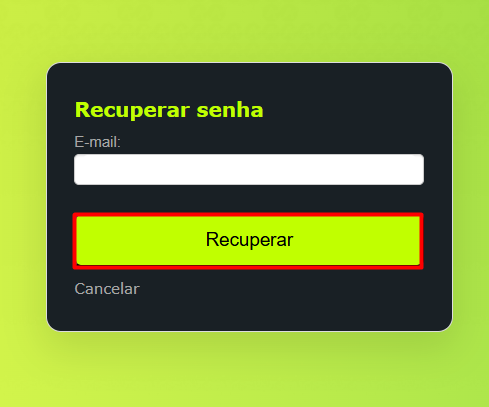 Coloque o endereço de e-mail do seu usuário cadastrado no sistema no campo “E-mail” e clique em “Recuperar”.