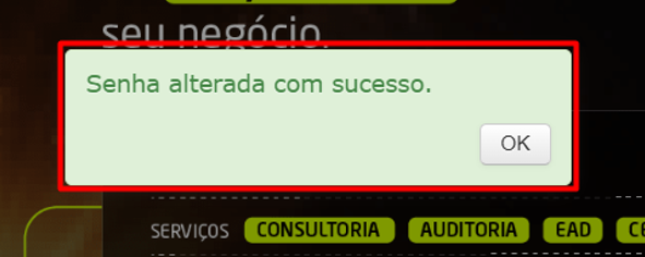 Ao finalizar o sistema informa que a alteração de senha foi concluída com sucesso e já é possível acessar o Portal novamente, informando o login e a nova senha